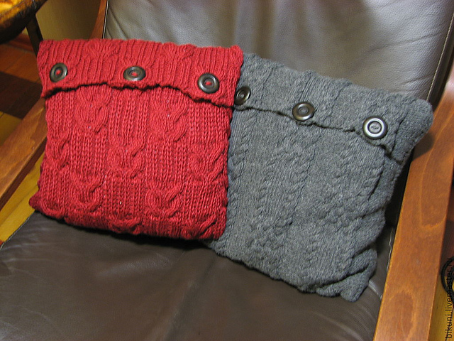 Подушки связаны вручную, узорами с косами и аранами.